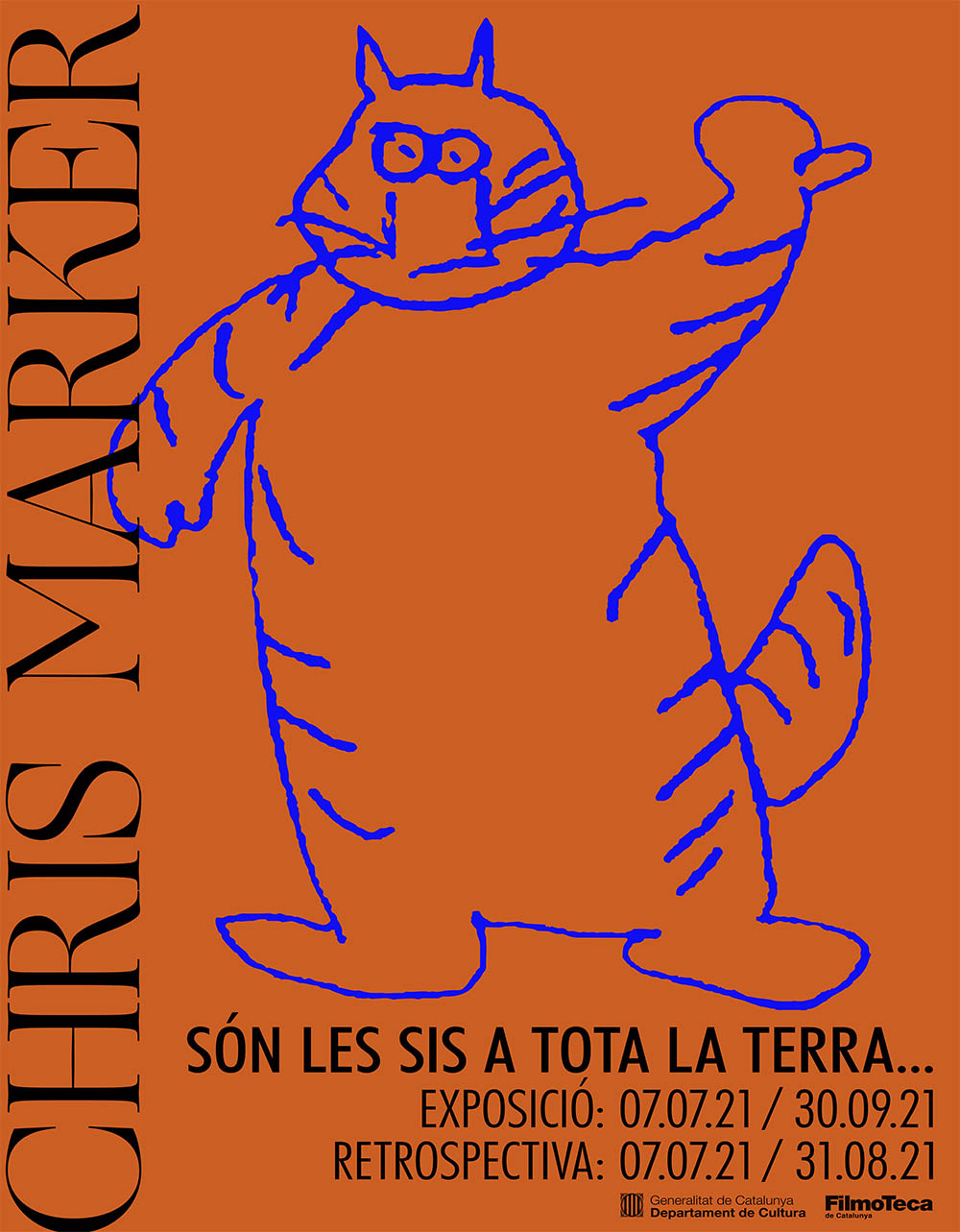*Il·lustració del gat Guillaume-en-Egypte a la imatge gràfica i senyalística de l’exposició, creat per Chris Marker, circa 1990.