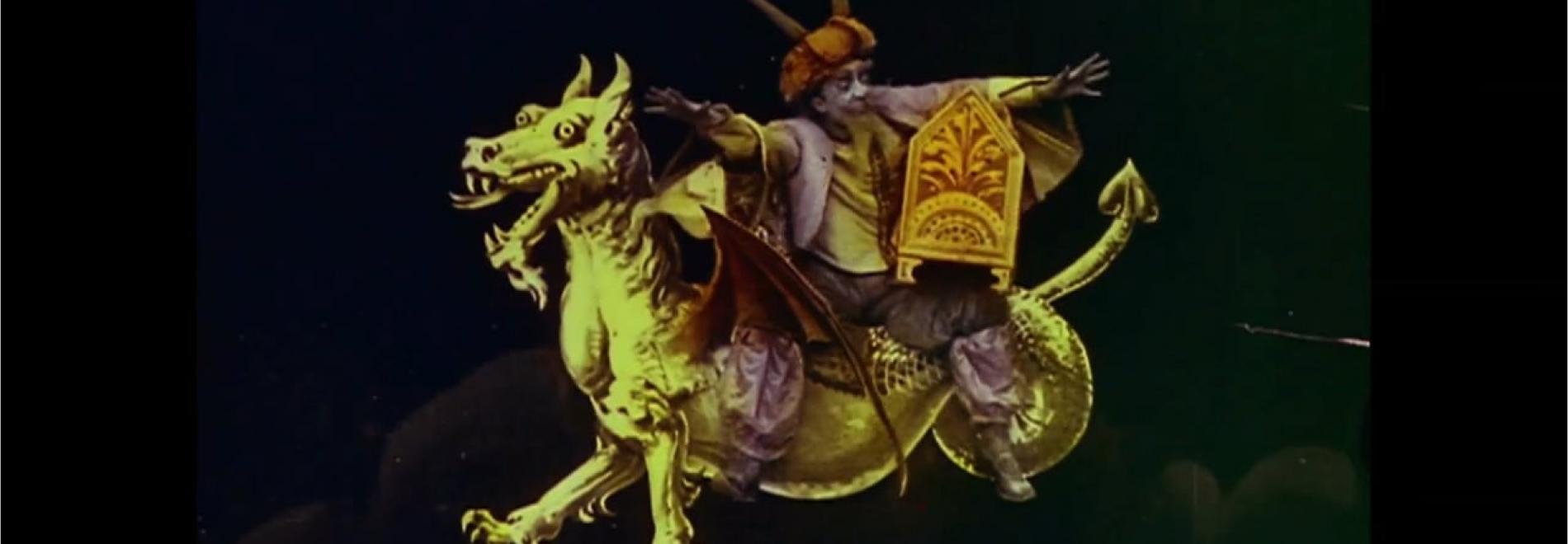 Conte oriental que explica la història d’un rajà i un mag que remouen cel i terra per tal de recuperar un cofre màgic que els ha estat robat per un malèfic bruixot.