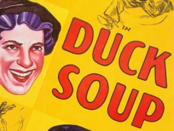 Duck Soup, la darrera de les pel·lícules que rodarien els Marx per la Paramount, conserva l’energia d’un cinema que no es plega al guió sinó que es pensa com una successió de gags sense cap tipus de lògica causal. Cada escena de la pel·lícula significa una pujada i baixada de teló on l’únic fil conductor és la guerra entre dos països centro-europeus imaginaris –Freedonia i Sylvania-. Al llarg del film, tot torna a ser possible en cada escena (inclús canvi de pla) on l’absència de continuïtat reforça el caràcter obertament surrealista de la proposta. Malgrat que el personatge de Groucho ja farà ús de la verborrea i ironia en la paraula, el film pot entendre’s com un últim slapstick en ple sonor, on els gestos o els objectes i el joc amb ells segueix essent un aspecte clau. Penseu en el gag amb els barrets o bé l’escena més memorable del film: el fals mirall amb un Groucho Marx triplicat. El que Thalberg, i per extensió la indústria de Hollywood, considerava imperfeccions d’un film com Duck Soup, passat el temps s’erigeixen com un darrer monument de resistència a un tipus de cinema no pensat en una lògica narrativa sinó del pur espectacle (absurd) de la llibertat creativa.