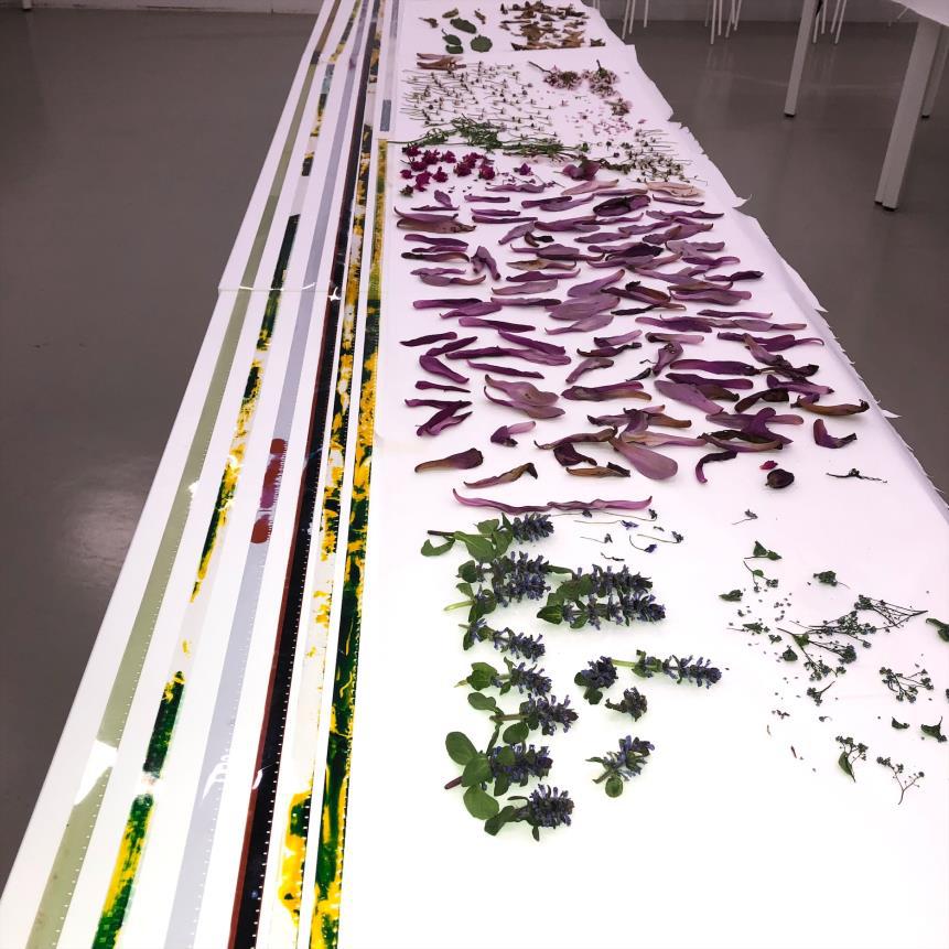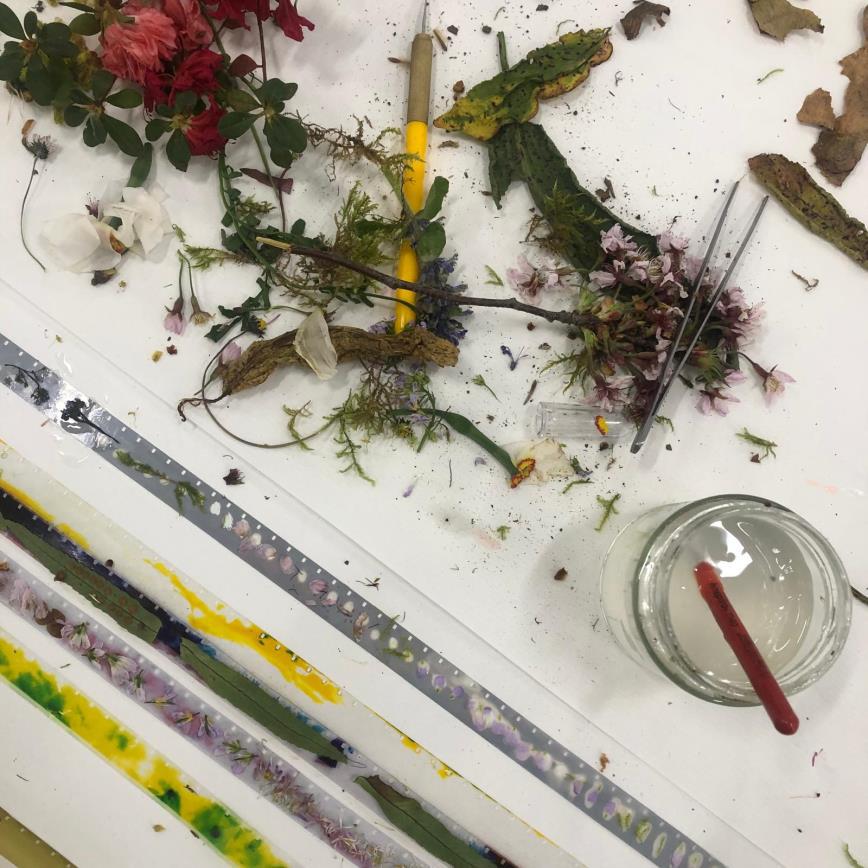 Sessió de continuació dedicada a la confecció de l’herbari fílmic, aprofundint en els processos d’adhesió i composició del material vegetal sobre el suport fotoquímic. El temps de treball lent i minuciós permetrà afinar les peces i posar atenció en els detalls materials, textures i densitats, entenent la confecció de la pel·lícula com un procés pacient, manual i meditatiu.